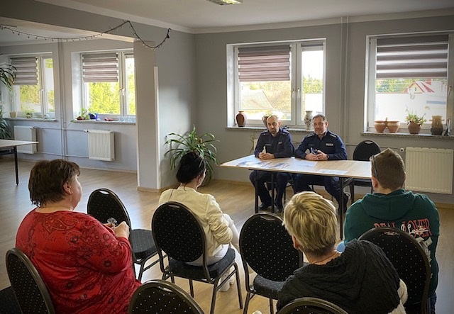 Policja, KPP Ostróda, spotkanie policjantów z seniorami w Gminnym Ośrodku Pomocy Społecznej w Małdytach