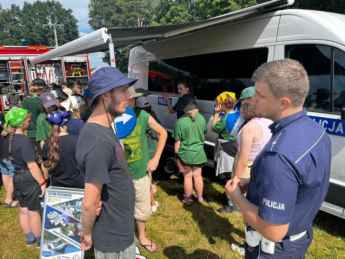 ZHP Chorągiew Warmińsko-Mazurska oraz Ogólnopolski Ruch Programowo-Metodyczny ,,Wspólnota Drużyn Grunwaldzkich'' zaprosili policjantów aby spędzić czas z harcerzami na Polach Grunwaldzkich. Celem było przeprowadzenie prelekcji na temat szeroko pojętego bezpieczeństwa ale również przedstawienie dzieciom i młodzieży charakterystyki służby w policji oraz sprzętu jakimi posługują się funkcjonariusze w codziennej służbie. Oprócz dobrej zabawy, harcerze mieli okazję poznać zasady bezpiecznego poruszania się po drodze oraz bezpiecznego wypoczynku nad wodą.