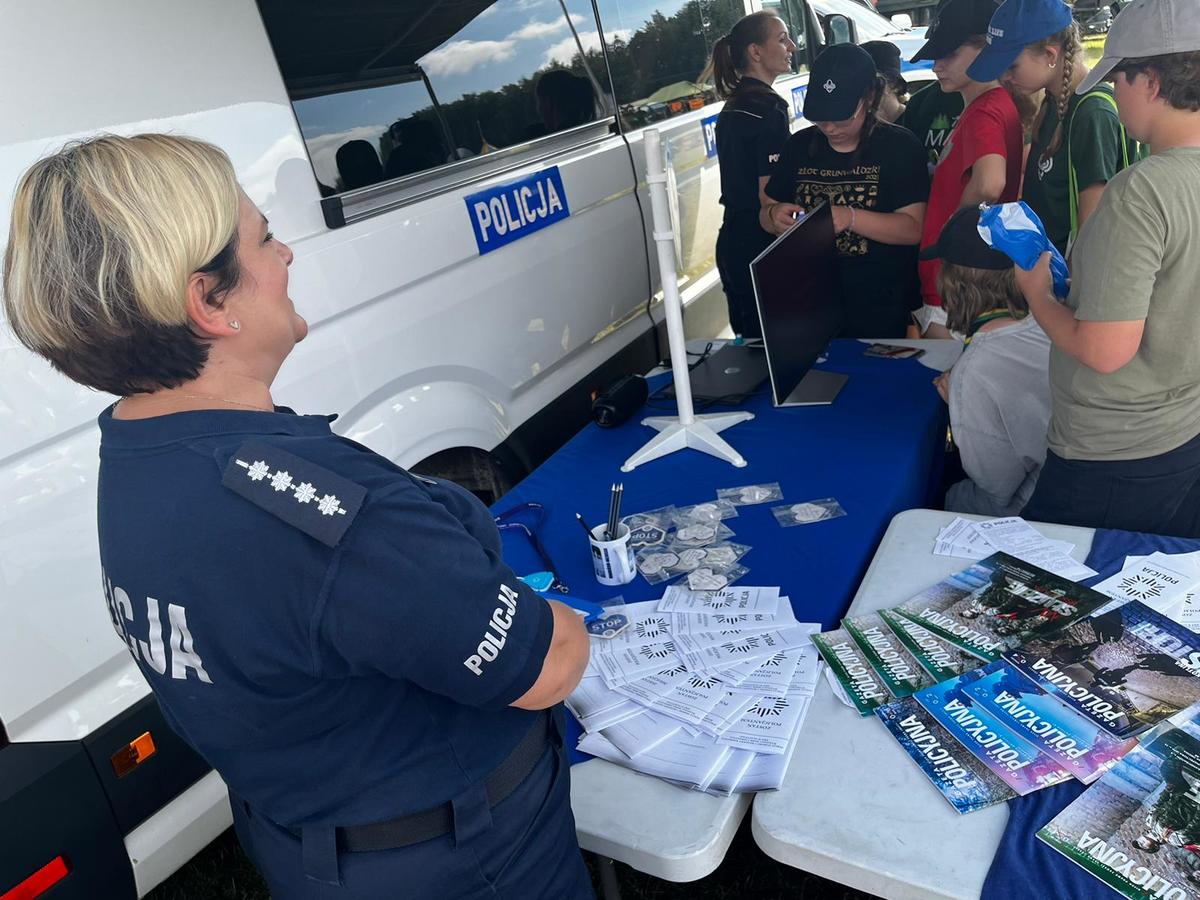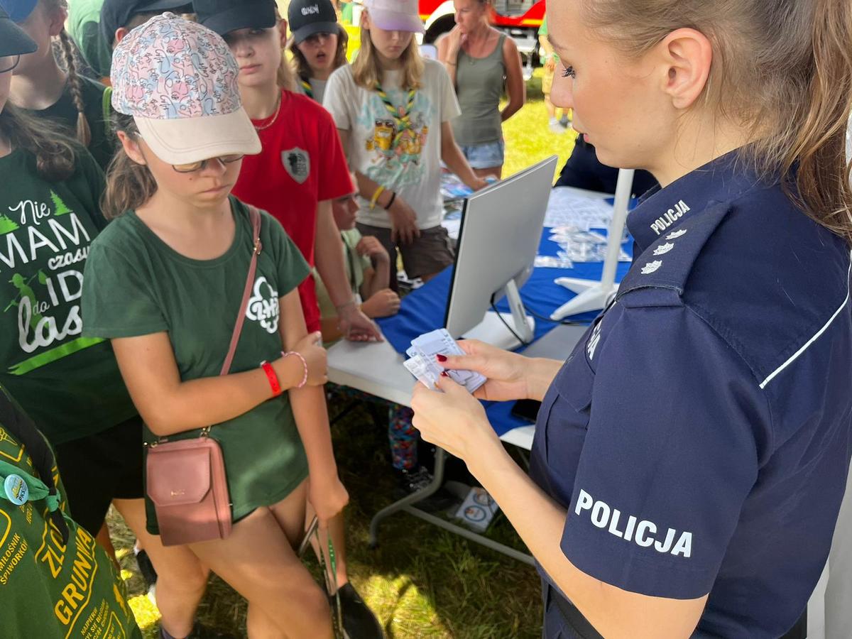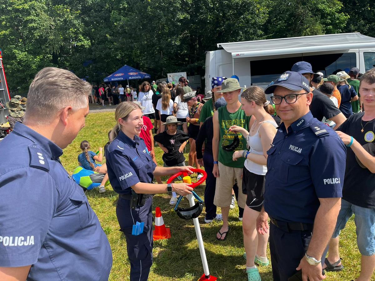 Podczas spotkania policjanci zaprezentowali radiowóz oraz sprzęt wykorzystywany w codziennej służbie. Stanowisko policyjne cieszyło się bardzo dużym zainteresowaniem. Odwiedzający policyjny punkt profilaktyczny, mogli sprawdzić swój refleks w aplikacji „Czas reakcji”, odpowiadać na pytania dotyczące bezpieczeństwa, również podczas wakacji. Każdy harcerz mógł otrzymać upominek w postaci elementu odblaskowego, bądź innego gadżetu. Oprócz dobrej zabawy, uczestnicy mieli okazję poznać zasady szeroko pojętego bezpieczeństwa.