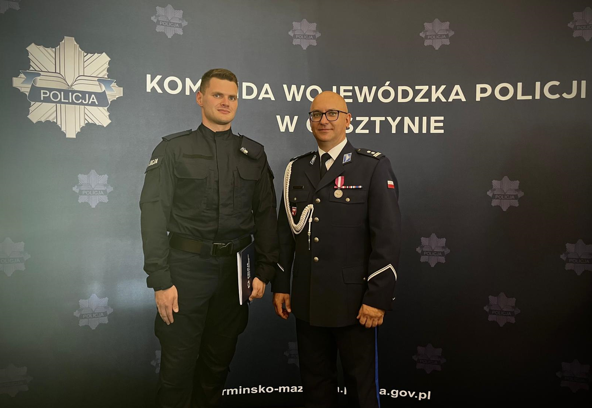 W tym uroczystym nie zabrakło obecności władz ostródzkiej jednostki. Komendant Powiatowy Policji w Ostródzie mł. insp. Adam Borowski osobiście pogratulował policjantowi, życząc sukcesów i pomyślności zarówno w życiu zawodowym jak i osobistym.