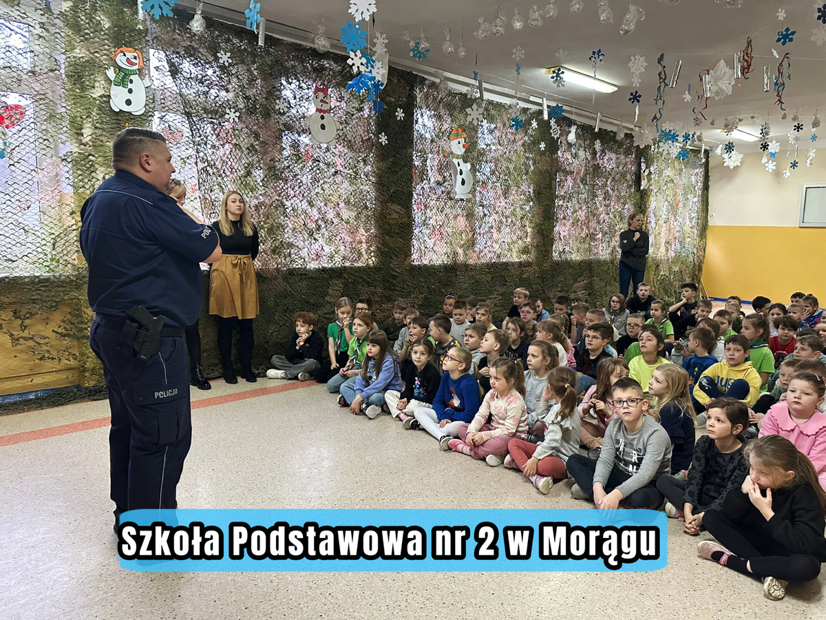 Policjanci z Morąga, Miłakowa i Łukty rozmawiali z uczniami o tym, jak bezpiecznie spędzić zimowy wypoczynek