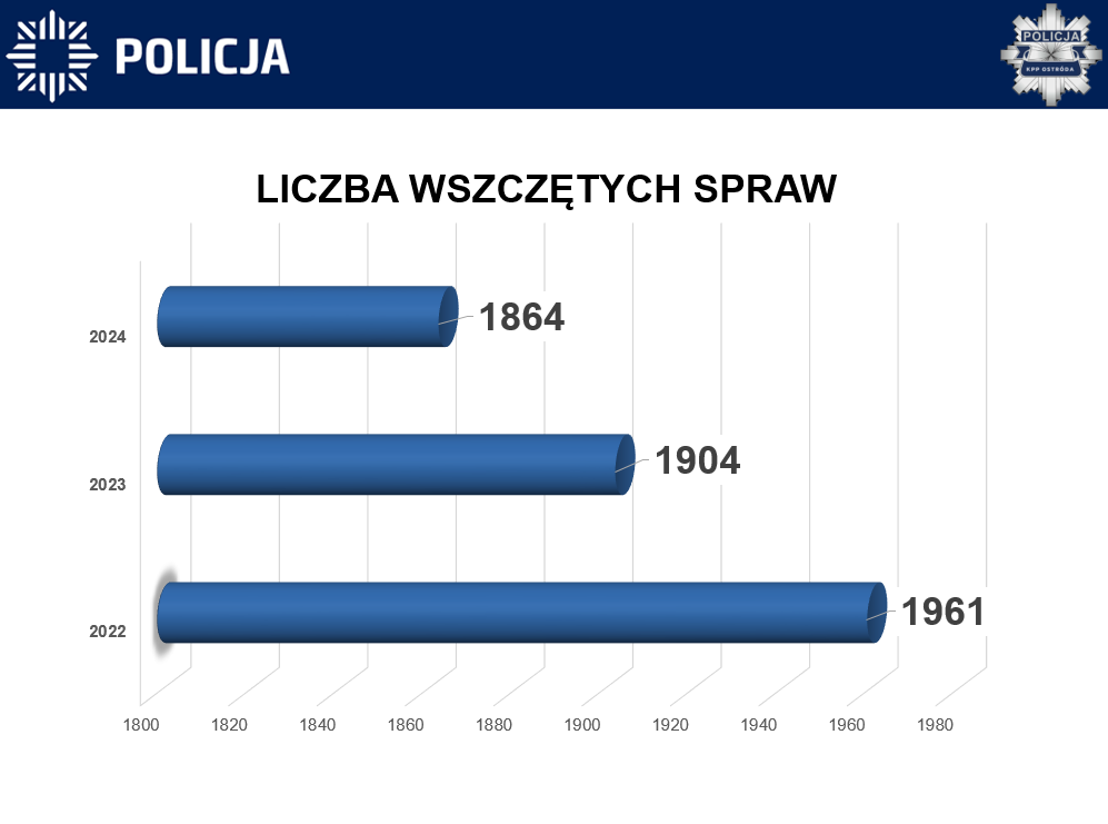 W minionym roku zostało wszczętych 1864 postępowań przygotowawczych, z czego 1105 spraw o charakterze kryminalnym. Wykrywalność przestępstw ogółem w powiecie ostródzkim wyniosła 71,7 proc.
