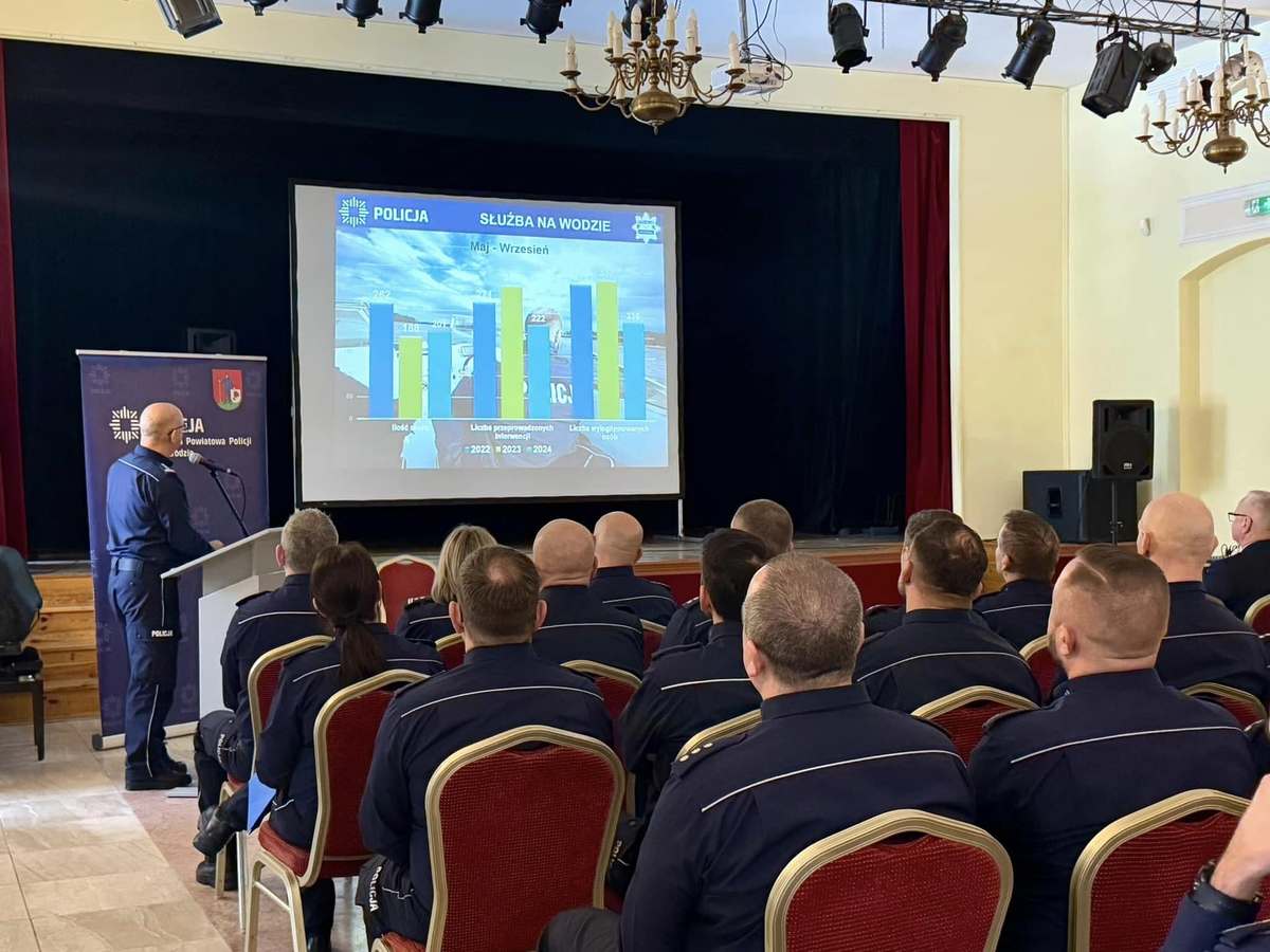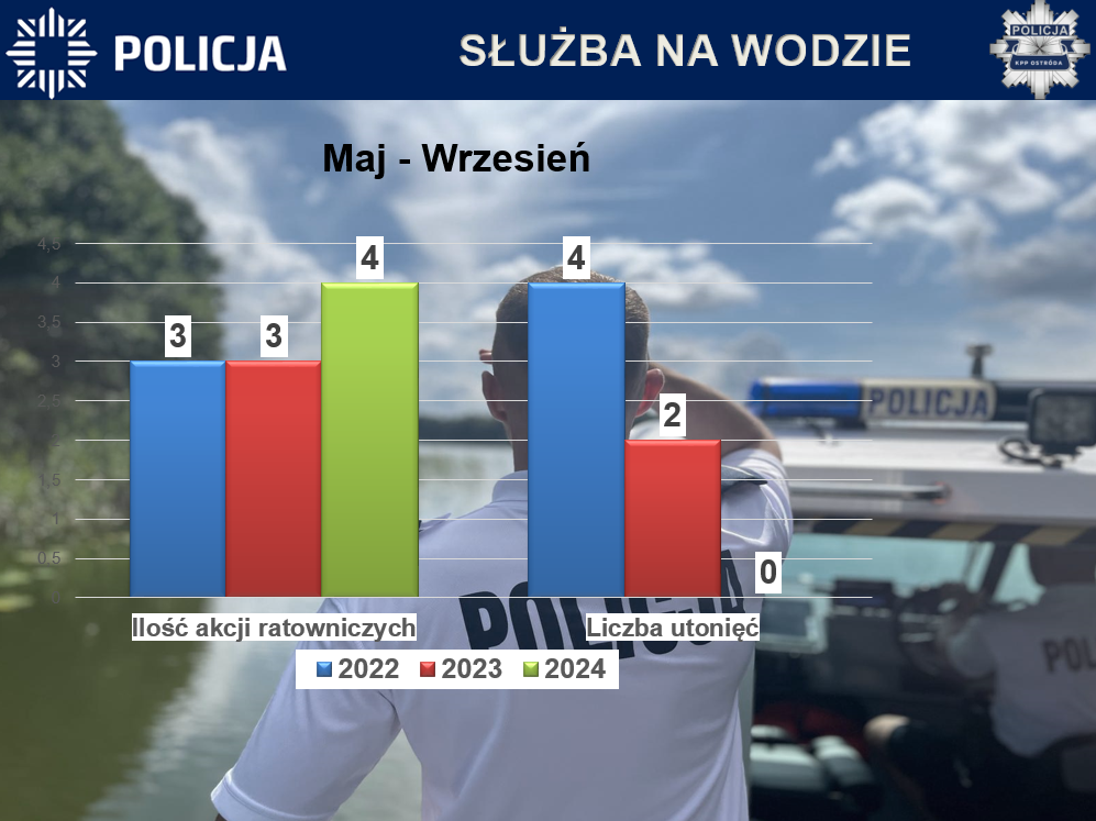 Policyjni wodniacy od maja do września 2024 roku odbyli 201 służb, podczas których wylegitymowali 236 osób. Przeprowadzili 122 kontroli kąpielisk strzeżonych oraz 773 kontroli kąpielsk niestrzeżonych. Wodniacy przeprowadzili łącznie 281 badań stanu trzeźwości osób znjadujących się na jendostkach pływających. W 2024 roku nie doszło do utonięcia. Przeprowadzone zostały jednak 4 akcje ratownicze podczas których żaden z uczestników nie odniósł obrażeń.