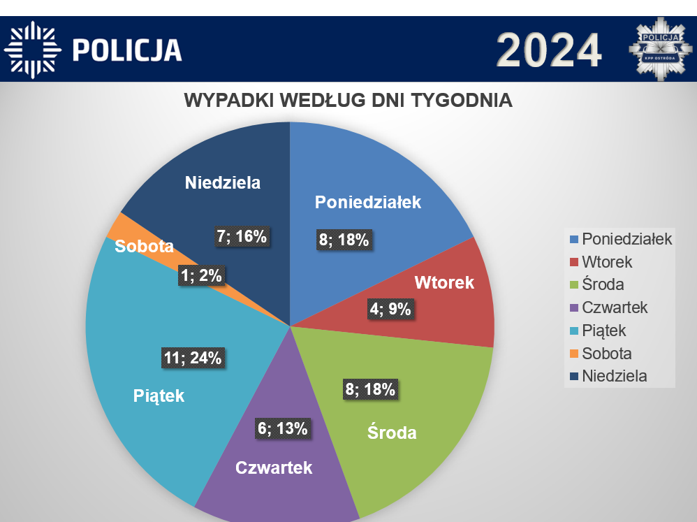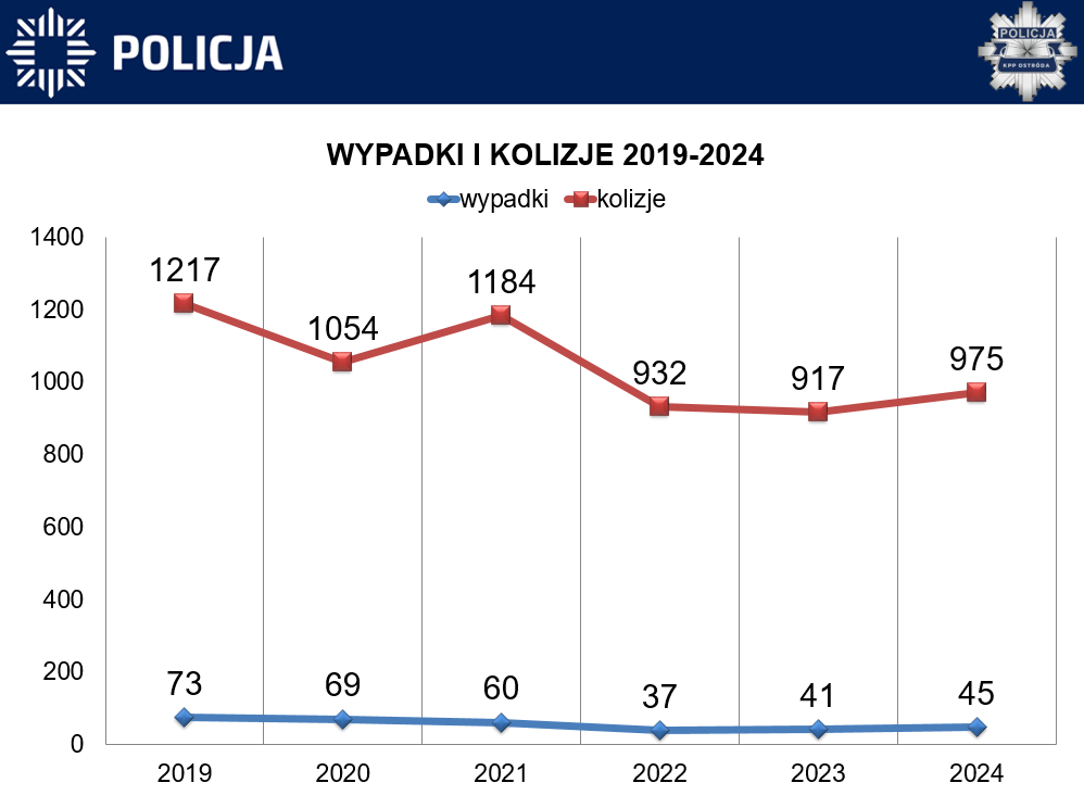 Na drogach powiatu ostródzkiego doszło do 45 wypadków drogowych, w których 9 osób poniosło śmierć a 47 zostało rannych. Doszło również do 975 kolizji drogowych. Dzieląc ilość kolizji drogowych na częstotliwość ich występowania, okazało się, że do największej liczby zdarzeń drogowych dochodzi w okresie letnim na przełomie miesiąca lipiec/sierpień. Według ostródzkich statystyk okazuje się, że najczęściej do incydentów drogowych dochodzi w piątki. Najwięcej zdarzeń miało miejsce na krajowej S7 oraz drogach wojewódzkich nr 528 i 527.