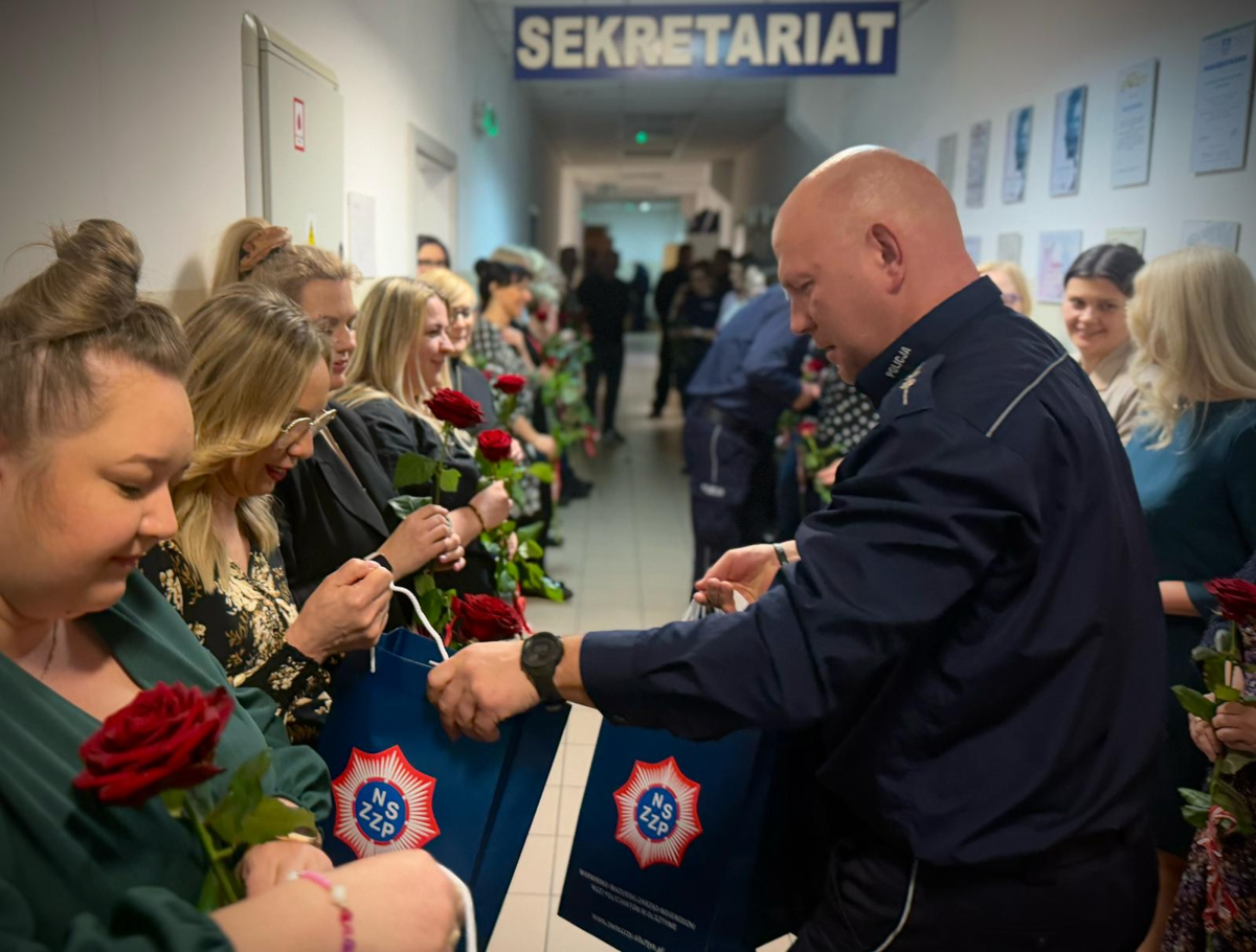 Komendant Powiatowy Policji w Ostródzie - insp. Adam Borowski, Naczelnicy Wydziału Prewencji i Ruchu Drogowego, Kierownicy oraz Przewodniczący Terenowego NSZZ Policjantów asp. Paweł Fijas wraz z zastępcą st. asp. Łukasz Wójcickim złożyli wszystkim paniom najserdeczniejsze życzenia i wręczyli kwiaty z okazji ich święta.