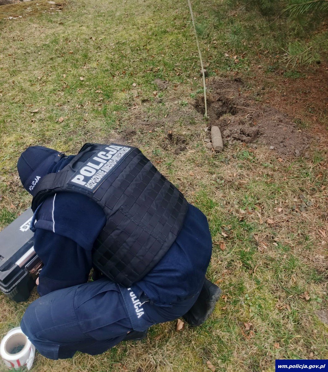 W środę (12.03.2025r.) dzielnicowy z Posterunku Policji w Miłakowie otrzymał informację o niebezpiecznym znalezisku znajdującym się w niedalekiej odległości od kościoła w Miłakowie. Po otrzymaniu zgłoszenia policjanci z PP w Miłakowie natychmiast udali się na miejsce znaleziska. Na miejsce pojechał również funkcjonariusz z grupy minersko-pirotechnicznej, który potwierdził, że znaleziony przedmiot to niewybuch w postaci pocisku artyleryjskiego odłamkowego o długości 30 cm i średnicy 7 cm. W celu zapewnienia bezpieczeństwa, do czasu jego podjęcia przez wojskowych saperów, teren w pobliżu znaleziska został zabezpieczony. Z uwagi na położenie znaleziska nie stwierdzono bezpośredniego zagrożenia życia.