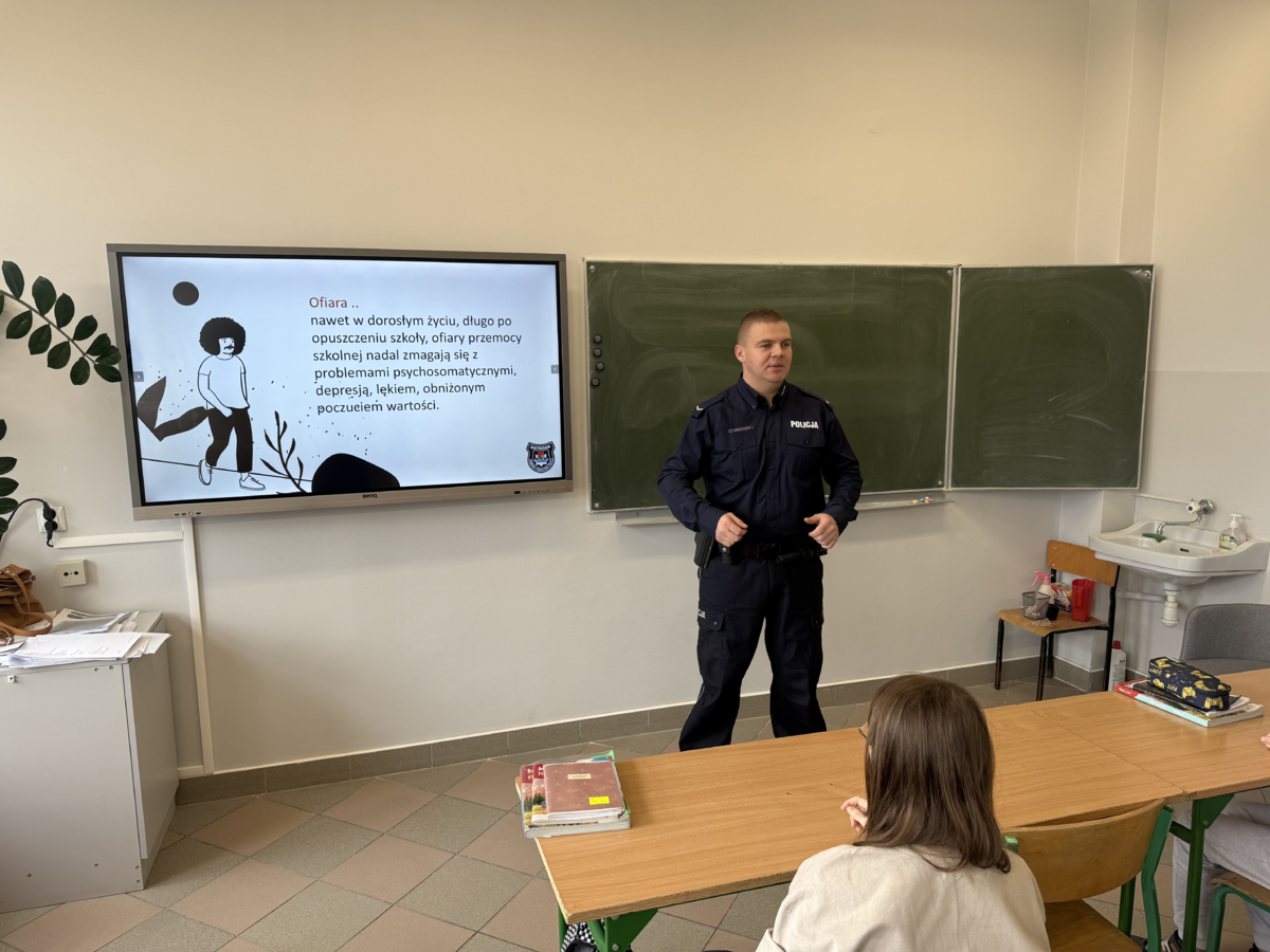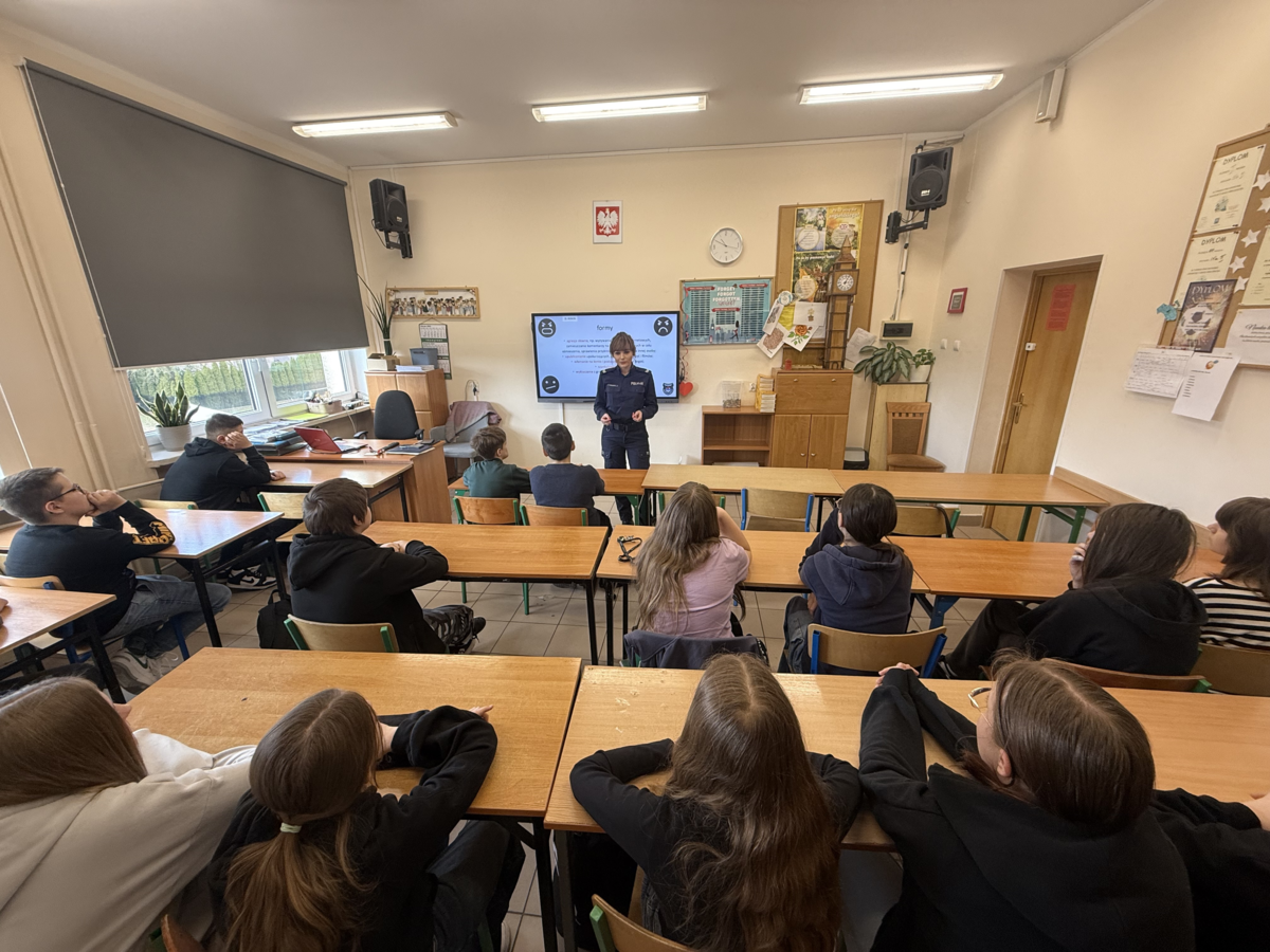W trakcie spotkania policjanci omówili, czym jest cyberprzemoc, jakie są jej formy oraz jakie konsekwencje prawne mogą grozić sprawcom internetowego hejtu. Uczniowie dowiedzieli się także, jak reagować na przemoc w sieci, gdzie szukać pomocy oraz jak bezpiecznie korzystać z internetu.