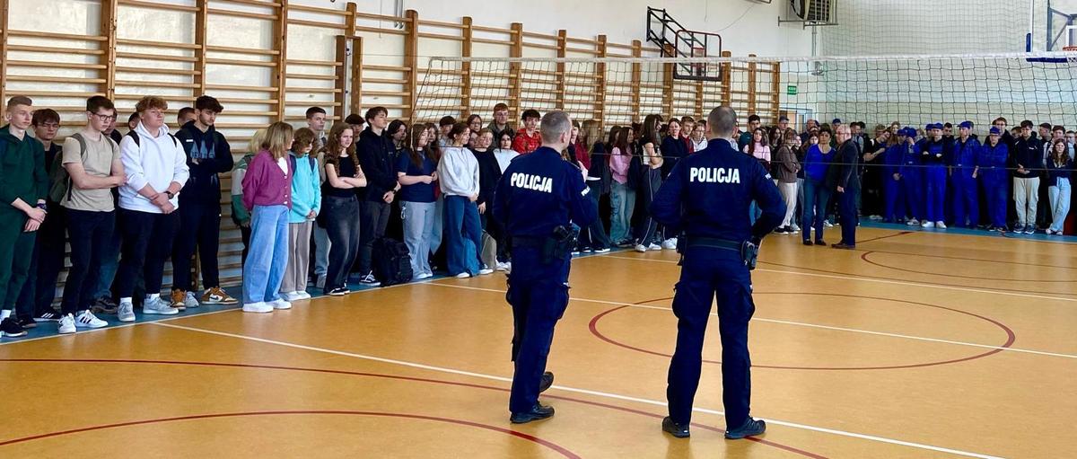 W czwartek (03.04.2025) dzielnicowi z Posterunku Policji w Małdytach odwiedzili uczniów Zespołu Szkół Centrum Kształcenia Rolniczego w Dobrocinie. Policjanci przypomnieli uczniom istotne kwestie dotyczące odpowiedzialności karnej nieletnich, omówili zjawisko hejtu w życiu codziennym i cyberprzestrzeni a także zwrócili uwagę na wzajemne relacje. Nie zabrakło również kwestii związanej z przestrzeganiem zasad ruchu drogowego ponieważ część z uczniów szkoły średniej ma już prawo jazdy i dojeżdża samochodami do szkoły.