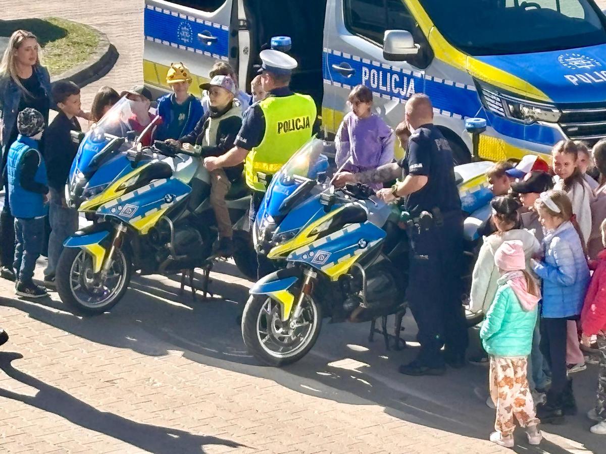 Ważną częścią spotkania była możliwość obejrzenia policyjnych samochodów i motocykli a także innych sprzętów wykorzystywanych przez policjantów w czasie pracy.