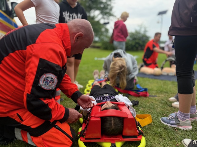W wydarzeniu uczestniczył także zespół ratownictwa medycznego, który przeprowadził praktyczne zajęcia z udzielania pierwszej pomocy. Uczestnicy uczyli się m.in. jak prawidłowo wezwać pomoc, ułożyć poszkodowanego w pozycji bezpiecznej i jak skutecznie przeprowadzić resuscytację krążeniowo-oddechową – umiejętności, które mogą uratować życie.