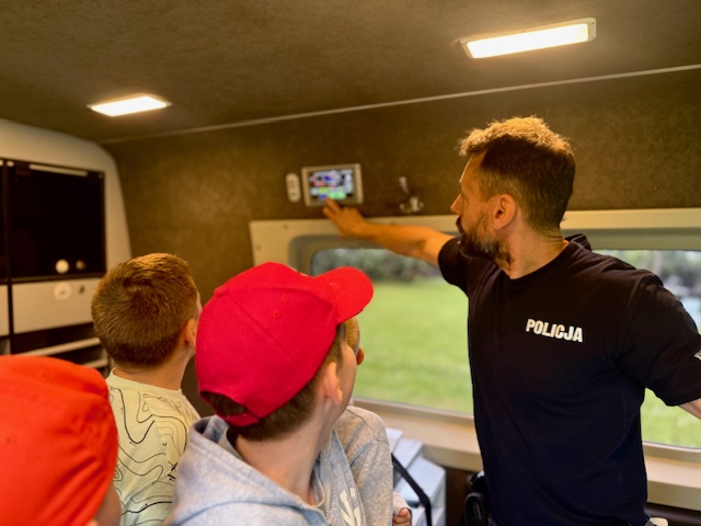 Podczas prelekcji dzieci miały okazję z bliska zapoznać się ze sprzętem wykorzystywanym na co dzień w służbie policyjnej. Dużym zainteresowaniem cieszył się pokaz radiowozu, wyposażenia technicznego oraz umundurowania funkcjonariuszy.