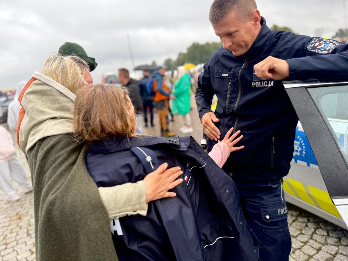 Mimo kapryśnej pogody – chwilowych opadów deszczu i porywistego wiatru – sytuacja na miejscu pozostawała pod pełną kontrolą służb. I tym razem nasz punkt profilaktyczny odegrał istotną rolę. Choć pierwotnie przeznaczony był głównie do działań edukacyjnych i profilaktycznych, szczególnie dla najmłodszych, to w czasie załamania pogody stał się także schronieniem dla osób szukających osłony przed deszczem i wiatrem.