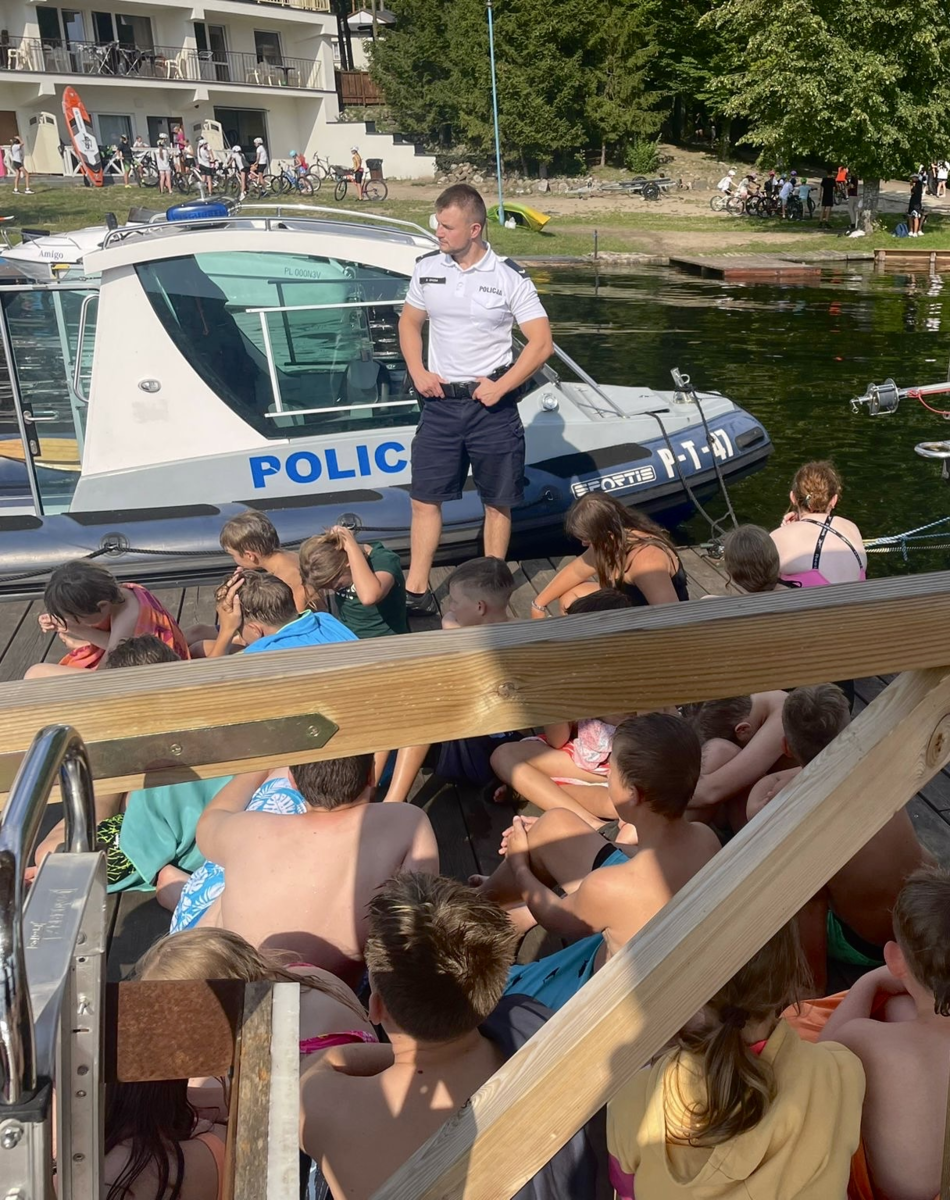 Podczas prelekcji funkcjonariusze omówili podstawowe zasady bezpieczeństwa podczas kąpieli, pływania łodziami oraz zabaw w pobliżu akwenu. Szczególną uwagę zwrócili na konieczność korzystania wyłącznie z kąpielisk strzeżonych, stosowania się do poleceń ratowników oraz unikania wchodzenia do wody po spożyciu posiłków lub w przypadku złego samopoczucia. Policjanci wyjaśnili również, jakie zagrożenia niesie skakanie do wody w nieznanych miejscach oraz jak należy zachować się w sytuacji, gdy ktoś potrzebuje pomocy.