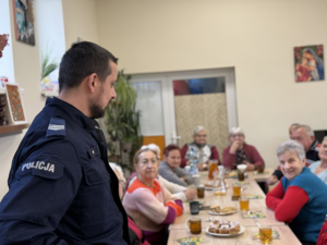 Równie istotnym tematem było bezpieczeństwo seniorów w ruchu drogowym. Funkcjonariusze przypomnieli o zasadach bezpiecznego poruszania się pieszo, konieczności używania elementów odblaskowych po zmroku, a także o szczególnej ostrożności podczas przechodzenia przez jezdnię. Omówiono również sytuacje związane z kierowaniem pojazdami przez osoby starsze – policjanci wskazali, jak ważna jest regularna kontrola stanu zdrowia.