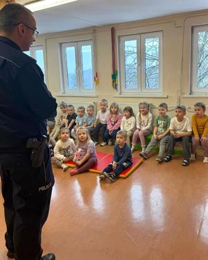 Dzielnicowy z Miłakowa z wizytą u przedszkolaków