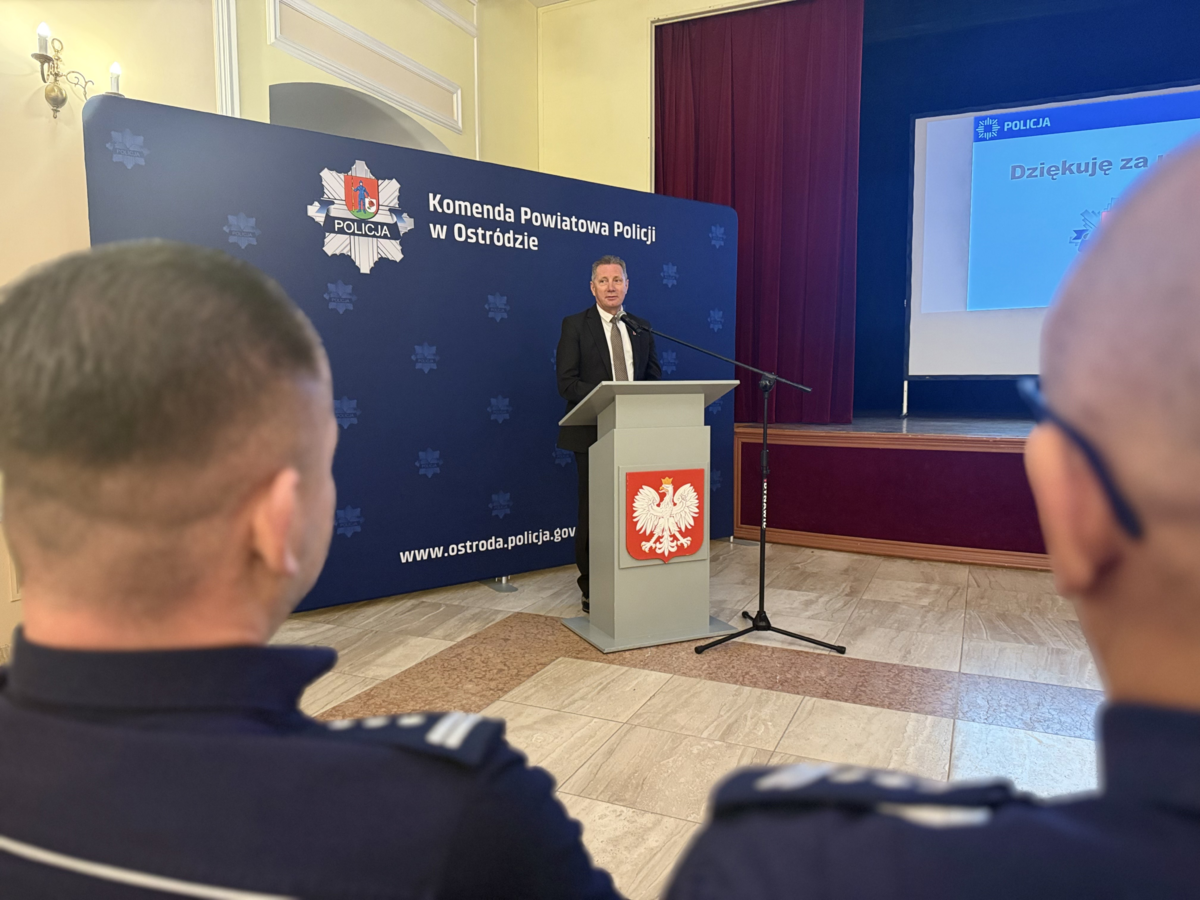 Następnie Komendant Powiatowy Policji w Ostródzie - insp. Adam Borowski przedstawił najważniejsze osiągnięcia, wyzwania oraz kierunki dalszych działań, podkreślając profesjonalizm, zaangażowanie i wysokie poczucie odpowiedzialności funkcjonariuszy.