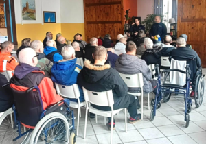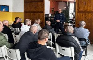 Policjanci odwiedzili podopiecznych Schroniska dla Osób Bezdomnych Markot w Marwałdzie, aby porozmawiać o bezpieczeństwie w sieci i zagrożeniach związanych z oszustwami internetowymi.