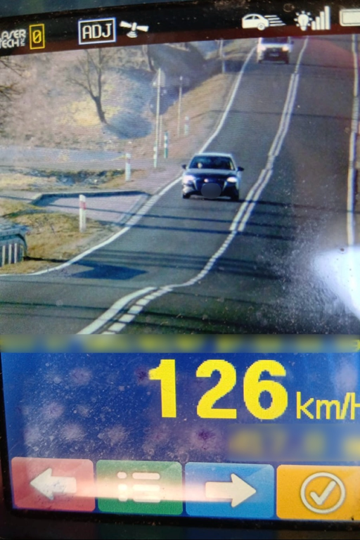W sobotę (7.03.2026) około godziny 8:00 na drodze krajowej nr 15 na wysokości miejscowości Ryńskie policjanci zatrzymali do kontroli kierującego osobowym Audi. 26-letni kierujący poruszał się z prędkością 126 km/h/ w miejscu, gdzie ograniczenie prędkości wynosi do 70 km/h. W związku z przekroczeniem prędkości o 56 km/h policjanci nałożyli na kierowcę mandat karny w wysokości 1500 złotych oraz przypisaniem do jego konta 13 punktów karnych. Za popełnione wykroczenie zatrzymane zostało również prawo jazdy.