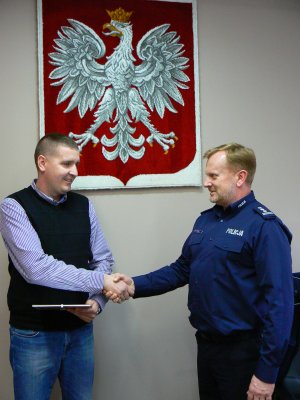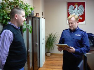 Z wdzięczności za działanie i bohaterską postawę Komendant Powiatowy Policji w Ostródzie insp. Krzysztof Fic wręczył podziękowania Łukaszowi Kurdupskiemu. On sam nie widzi w tym nic nadzwyczajnego.