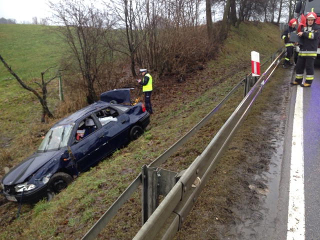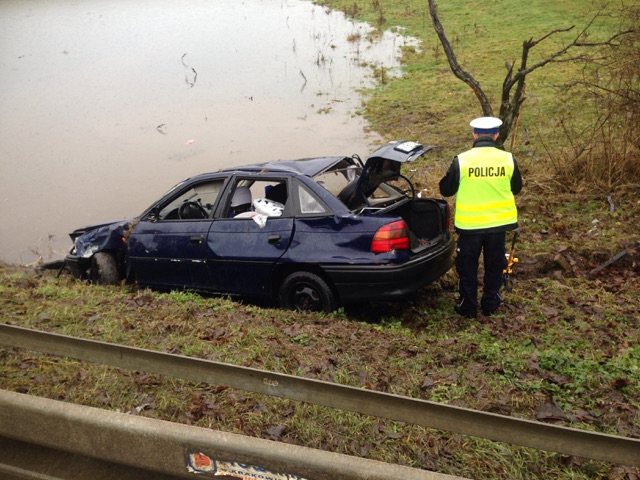 Do zderzenia doszło wczoraj (11.12.2016 r.) po godzinie 11.00 na krajowej 15 w okolicy miejscowości Ryńskie. Ze wstępnych ustaleń policjantów wynika, że 68-letni kierowca opla nie dostosował prędkości jazdy do panujących warunków drogowych i tracąc panowanie nad pojazdem uderzył w barierę energochłonną po czym wjechał do zbiornika wodnego.