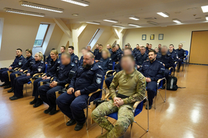 Po czterech tygodniach zakończyło się piąte w tym roku w garnizonie warmińsko-mazurskim szkolenie zawodowe aspiranckie. W kursie wzięło udział 48 funkcjonariuszy z regionu. Zdany pozytywnie egzamin końcowy pozwoli im awansować na wyższy stopień służbowy. Z uczestnikami kursu na jego zakończenie spotkał się insp. Mirosław Elszkowski Komendant Wojewódzki Policji w Olsztynie.