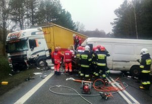 Wczoraj na drodze krajowej w pobliżu Starych Jabłonek doszło do zdarzenia drogowego z udziałem dwóch pojazdów. Kierujący volkswagenem tracąc panowanie nad pojazdem uderzył czołowo w nadjeżdżającą ciężarówkę. W wyniku zderzenia i doznanych obrażeń kierowca busa w ciężkim stanie został przewieziony do szpitala. Policjanci wyjaśniają okoliczności wypadku.