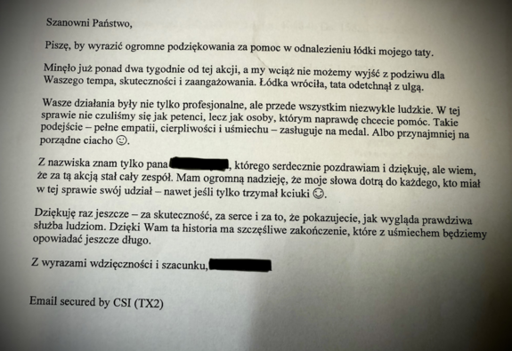 Ostródzcy kryminalni odzyskali skradzioną łódź wiosłową – podziękowania za skuteczność i profesjonalizm